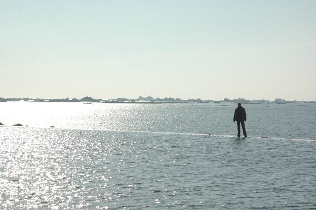 Havre des Pas swimmingpool, Donar staat op de rand van het zwembad welke bij hoogwater wordt overspoeld.